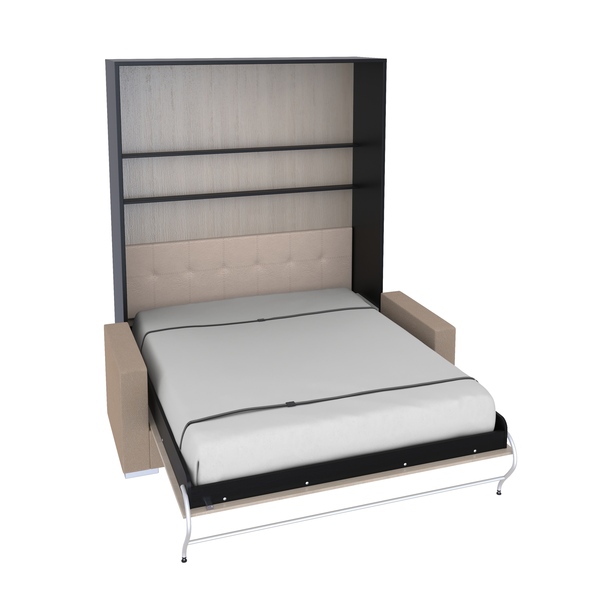 Откидная кровать с открытой задней стенкой, механизм – итальянские пружинные блоки. Спальное место: 200х140, глубина шкафа 50 см. Корпус – венге, фасад – дуб кремона шампань.