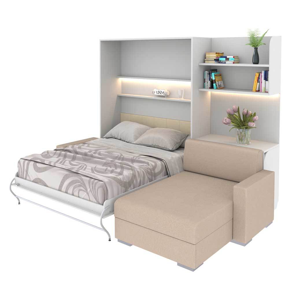 Шкаф-кровать вертикальная Виктория с угловым диваном, тумбой и полками